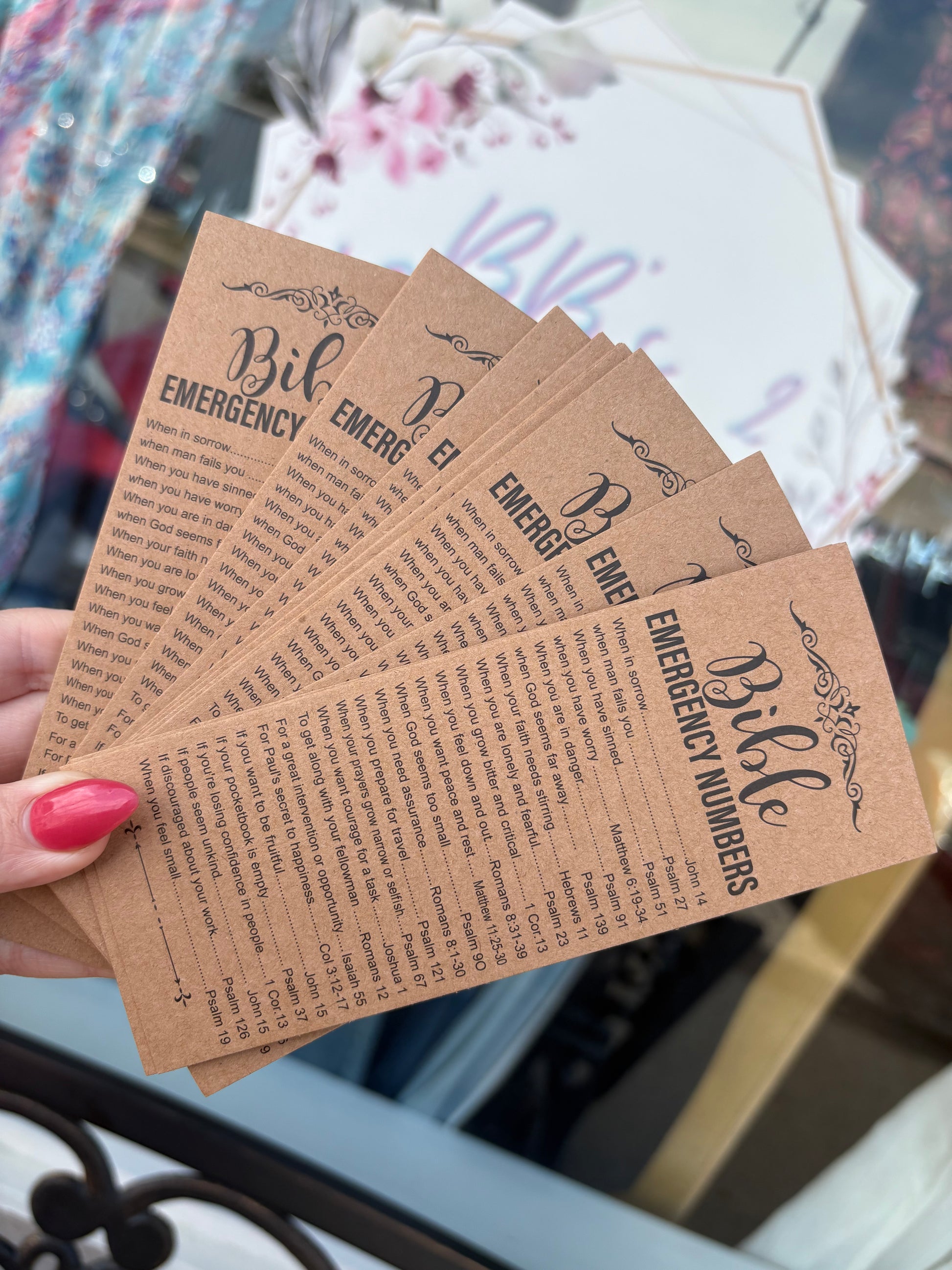 Did you know the Bible has emergency numbers ? When you need to call on John 15:16, Psalm 121, or Hebrews 11. You can carry this in your wallet, or use as a Bible bookmark. The cardstock material is made to last, just as the Lord's love for us !